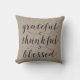 Coussin Grateful Thankful Blessé Script rustique - chevron