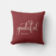 Un oreiller simple et moderne en bordeaux avec le mot "Grateful", personnalisez avec votre nom. Ce coussin est l'ajout parfait à vos décorations d'automne, ou fait un beau cadeau.