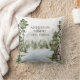 Faites l'élévation de votre location de vacances avec notre Green Pine Forest Family Lake House Cabine Throw Pillow. Illustration de l'aquarelle des bois. Personnalisez-le et ajoutez une touche de charme à votre maison de lac.