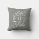A perfect addition to your lakeside abode, our chic medium gray throw pillow features "life is better at the lake" in white typography. Personalize the reverse side with your family name and year established.