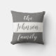 Votre famille va adorer cet oreiller à jetons personnalisé chic et moderne. La coussin a des rayures gris foncé et blanches customisées avec "la famille (Nom)" dans les couleurs opposées.