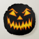 Lance ronde oreiller en noir avec un visage d'Halloween effrayant. Customisez cet objet ou achetez tel quel.