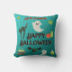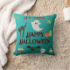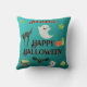 Spectaculaire thème de la fête d'Halloween sur un arrière - plan turquoise unique. Décoré avec tous les classiques dans un style aquarelle art comme un chat noir, un fantôme sympathique, des citrouilles et plus !