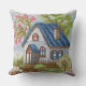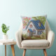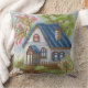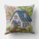 Elevate your home decor with this unique and charming throw pillow, featuring a remarkably detailed mosaic or diamond painting style artwork of a quaint cottage under a vibrant blossoming tree. This isn't just a print; the tactile, pixelated texture gives the illusion of thousands of tiny, colorful tiles or beads carefully hand-applied, creating a rich visual depth. The design captures a cozy stone and white-walled house with a blue roof, surrounded by lush green trees and a burst of pink and green blossoms on a large flowering branch, set against a mosaic sky. It's perfect for adding a touch of cozy, creative warmth to a teal velvet sofa or any living room armchair. Crafted on high-quality fabric for a luxurious feel, this pillow is a beautiful gift for craft lovers and home design enthusiasts. The reverse side can be customized or a solid color.