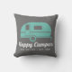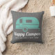 Un coussin à l'accent gai, parfait pour votre camper ou votre RV. Montré avec un arrière - plan gris fusain et une conception de camper de couleur turquoise avec la phrase "Happy Campers". Customisez votre nom de famille pour en faire une sorte. La couleur Arrière - plan peut également être changée pour correspondre à votre décoration et vos préférences.