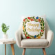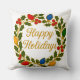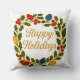 Coussin Happy Holidays Wreath Christmas Lights and Holly