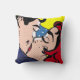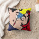 Sautez "il était une fois" la partie et sautez directement au "heureusement pour toujours" partie avec ce carreau pour toujours heureusement inspiré par bande dessinée. Les caractéristiques de conception d'art de bruit un couple classique embrassant sous un jaune, pleine lune. Le bord opposé du coussin est un jaune solide et vibrant.
