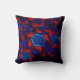 Coussin hexagone bleu mélangé avec des courbes rouges qui