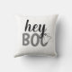 Moderne et mignon "Hey Boo" Halloween décoration d'intérieur coussin avec des textes en noir, gris et blanc avec un petit accent fantôme.