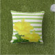 Coussin Hibiscus jaune tropical sur rayures vertes