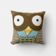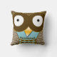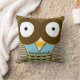 Coussin Hibou américain bleu et orange mignon personnalisé