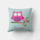 Coussin Hibou rose sur un carreau personnalisé par branche