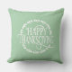 This holiday throw pillow is shown with a Happy Thanksgiving print.