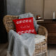 Design festif en rouge et blanc avec des hollies blanches. Il est livré avec le texte "Dieu juil" - il signifie joyeux Noël en suédois et dans d'autres langues scandinaves aussi.Vous pouvez le customiser maintenant avec votre propre texte.Ce design coussin est disponible sur différents types de tissu.