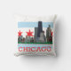 Une illustration d'ordinateur de l'horizon de la Gold Coast de Chicago superposé au drapeau de la ville. Le texte "CHICAGO" paraît au fond de l'illustration dans une police rouge.
