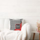 Coussin Houndstooth et monogramme classiques | Blanc noir
