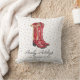 Ces oreillers jettent de noël présentent un portrait aquarelle d'une paire de bottes de cowgirl rouges avec la légende "vacances chaudes" contre un arrière - plan pois de polka.