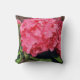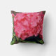 La photographie originale de MaeFlowers sur cet oreiller à jet de 16" est un closep d'hydrangées roses et leurs feuilles de printemps bordés de dentelles. Le pompon central des pétales de fleurs remplit presque la photo, entouré par les feuilles verts et des morceaux d'autres pompons de fleurs de chaque côté.