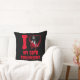 This gothic throw pillow says 'I Love My Goth Girlfriend' in a red horror font - you can edit the text as needed. Also has a red dripping silhouette of a bloody heart with a photograph template, which you can replace with a photo of your goth girlfriend.