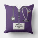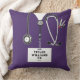 Infirmière coussin créative avec gommage à l'hôpital violet, stéthoscope et couteau suisse. Modifier le texte pour ajouter le nom et les informations d'identification professionnelles.