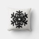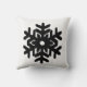 Un délicat motif de flocon de neige dentée sur un arrière - plan solide à la texture rayée et tissée Ikat - flocon de neige noir sur un coussin carré arrière - plan blanc