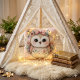 Ce design enchanteur de chouette florale boho capture un charme forestier réconfortant, mêlant des pastels doux et des détails fantaisistes d'une manière qui se sent à la fois magique et moderne. Avec une chouette aux yeux écarquillés ornée d'accents floraux délicats, de motifs d'ailes complexes et d'un charmant nœud rose en couronne, cette illustration irradie de douceur et de personnalité douce. La palette comprend des roses blush, des blancs crémeux, des bleus poussiéreux et des verts atténués, créant une atmosphère cosy et de conte de fées parfaite pour les thèmes de nurserie, la décoration saisonnière ou la papeterie fantaisiste. Les éléments floraux et les ombrages doux ajoutent de la profondeur et de la chaleur, rendant le personnage délicieusement expressif et attachant. Idéal