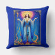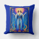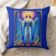 Coussin sur la carte tarot "La Reine des Bandes". Debout, dans des robes bleues qui coulent, rayonnant sous un halo doré, elle tient une baguette, symbolisant le pouvoir et la créativité. Entourée de branches et d'étoiles enflammées, elle dégage confiance, chaleur et force spirituelle