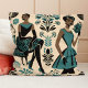 Étendez votre intérieur grâce à notre coussin de décoration moderne du milieu du siècle, avec d'élégantes illustrations de femmes noires en robes turquoises. Le design saisit l'essence de la mode des années 1950 avec une motif vintage transparente, apportant un charme intemporel et sophistiqué à toute chambre.