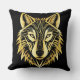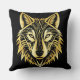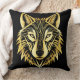 Œuvre d'art représentant une tête de loup doré dans un style détaillé et géométrique, centrée sur un fond noir, symbolisant la force, l'élégance et le mystère.