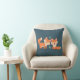 Un coussin avec une illustration graphique de 2 renards oranges à l'air mignon et heureux. Arrière - plan vert foncé.