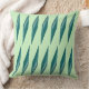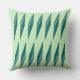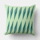 L'oeuvre de l'oreiller de lancer présente un motif de formes en losange, allongées et cyan, disposées en forme de grille en dégradé, illusionnaire et tridimensionnel contre une toile vert thé pastel frais.