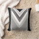 Coussin Imprimé rayé métallisé noir, gris diagonal