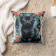 Coussin Imprimé Vintage Chaton Noir et Pivoines