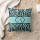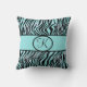 Coussin Imprimé zèbre monogrammé sarcelle turquoise aqua n