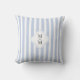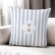 Coussin Initiales monogrammes bleu clair pâle rayures blan