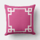 Le design élégant et moderne du coussin carré accent dispose d'un cadre géométrique clé grecque et monogramme qui peut être personnalisé. Couleurs chaudes rose magenta et blanc. La couleur Arrière - plan peut être modifiée.