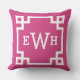 Coussin Initiales personnalisées de la clé magenta grecque