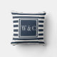 Élégante taie d'oreiller rayée bleu marine et blanc avec un monogramme d'initiales carrées gras. Cadeau idéal pour un mariage ou une pendaison de crémaillère. Vous pouvez personnaliser les initiales et choisir une couleur à votre goût. Conçu par Thisisnotme©