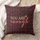Add warmth and positivity to your space with this You Are Enough Motivational Throw Pillow. Featuring an elegant burgundy background with stylish script typography and a subtle heart detail, this 12x12 square cushion is a beautiful reminder of self-worth and confidence.