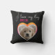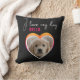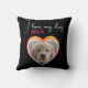 J'aime mon chien Coeur animal de compagnie Nom photo Oreiller à lancer noir. Une photo en forme de coeur et un texte en écriture tendance. Ajoutez votre photo et votre nom.