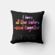 Ce coussin noir clair est muni d'une légende arc-en-ciel aquarelle qui dit : "J'aime toutes les couleurs mélangées" et le mot "NOIR" dans toutes les polices noires casquettes avec un contour blanc. C'est parfait pour chaque Amant Noir.