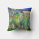Coussin représentant la peinture à l’huile de Claude Monet Le jardin de l’artiste à Vétheuil (1880). Des tournesols et d'autres belles fleurs bleues et rouges bordent un chemin de jardin où les enfants se promènent agréablement. Un grand cadeau pour les amateurs d'impressionnisme et d'art français.