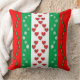 Belle texture de tissu (on voit vraiment le motif de tissu) aux formes vertes et rouges. Certains ont le coeur dessus. Gold trim complète la recherche d'un coussin agréable pour la saison de Noël.