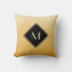 Améliorez votre style personnel avec cet élégant et élégant carré monogramme jaune et noir jetez l'oreiller. Cette conception simple et sophistiquée de dégradé brossé avec un cadre moderne en forme de losange avec une bordure en or peut être personnalisée en ajoutant votre initiale monogrammée. Impression plane, NON métallique.