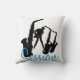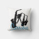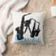Sax formant le mot "J(a)zz" avec saxophoniste pour A. Design noir avec mot "Session" bleu et arrière - plan blanc (personnalisable) sur coussin carré.