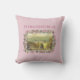 "Je préférerais être à Pemberly" est un coussin décoratif à bordure de rose florale rose vintage. La photo représente Chatsworth House, qui a été utilisée comme Pemberley, la demeure de M. Darcy, dans l'adaptation cinématographique de 2005 de Orgueil et Préjugés.