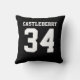 Ajoutez un nom et un numéro pour personnaliser ce coussin d'accent personnalisé à double face en noir et blanc inspiré du maillot de sport. C'est un excellent cadeau pour un supporter sportif ou un athlète. Les options pour changer la couleur et la taille de police sont disponibles.