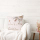 Welcome to a precious celebration with this customized "welcome to ♡ Jessica's BABY SHOWER" throw pillow. Featuring a beautiful neutral-toned watercolor floral arrangement (roses, eucalyptus) and graceful flying pink and purple butterflies. Perfect for a cozy chair at the gift table or nursery. Personalize the name. A unique keepsake from Daddy, Mommy, or loved ones. Print is clear and soft on quality fabric. Double-sided print by default.