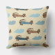 Jeter l'oreiller avec un jouet avion en marron et bleu.