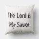 Jette l'oreiller avec Jésus et les mots "Le Seigneur est mon Sauveur" écrits sur le dos du coussin